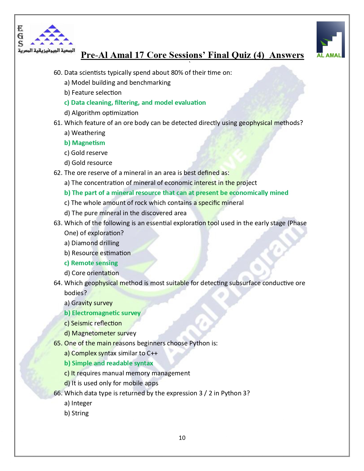 Download Now: Comprehensive Answers to the Pre-AI Amal 17 Core Sessions' Quiz 4 (Final Quiz) - Al AMAL Program